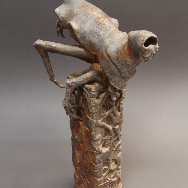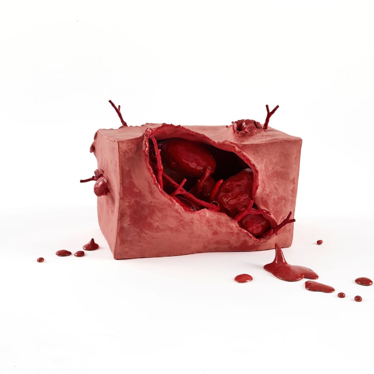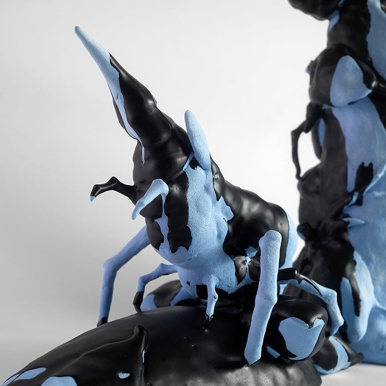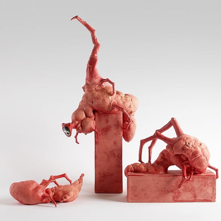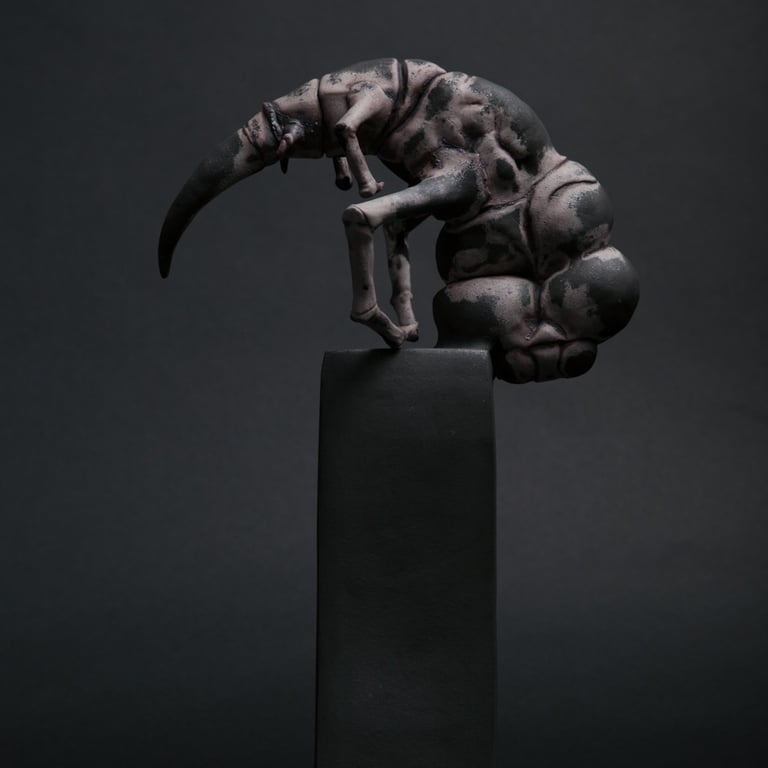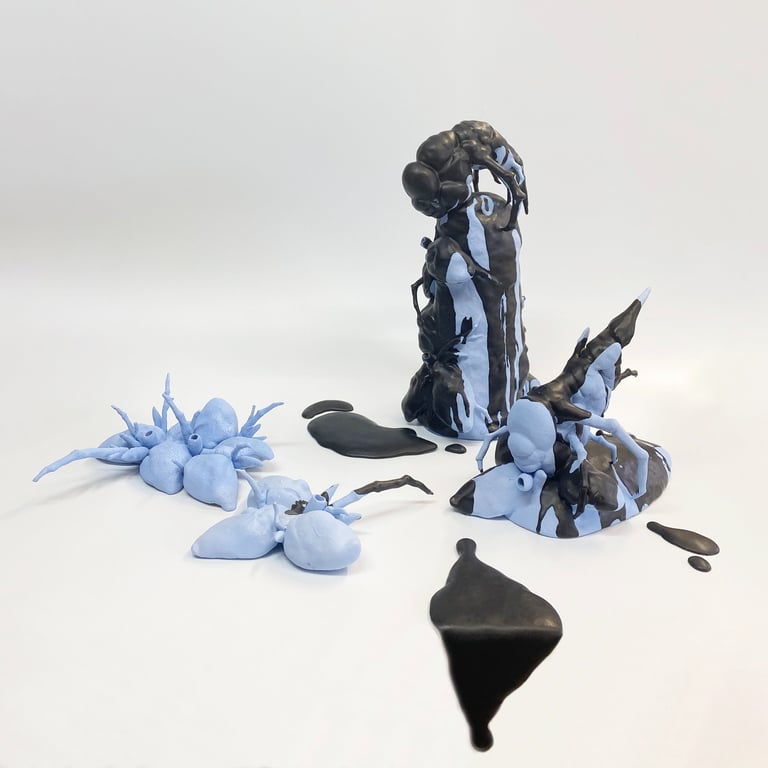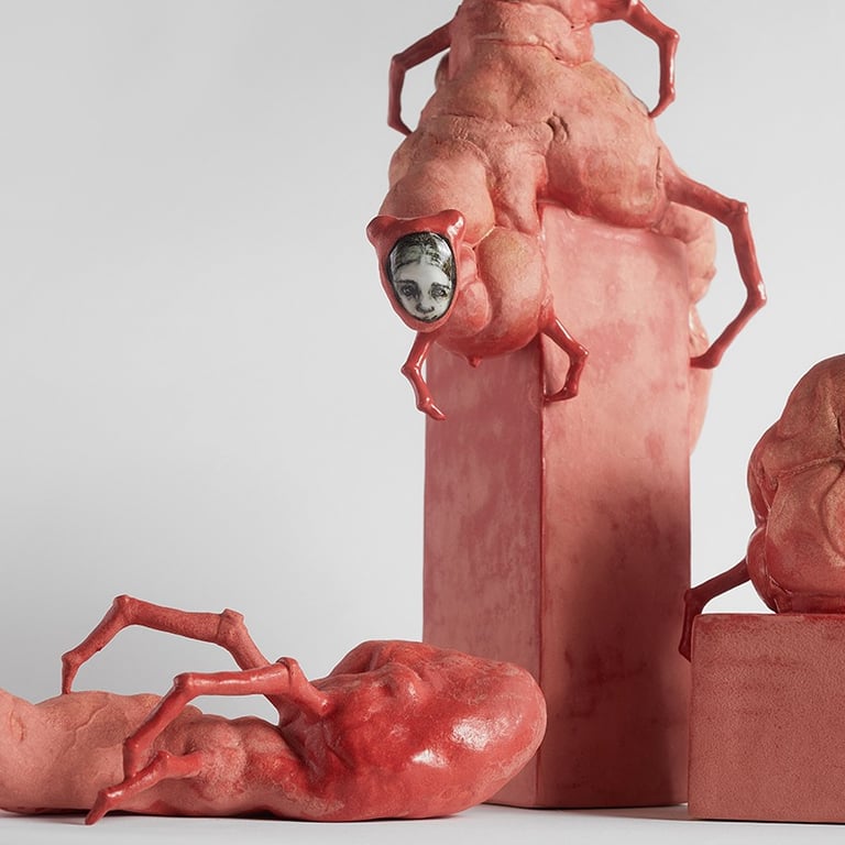 ,,INSOMNIA“ is a cycle of works, created in 2020 – 2023. What links them all together is an anxious, intuitive sense of threat. During this time period the world has changed - the global pandemic and later on war in Ukraine forced people to pause and think about the meaning of life, reflect on own individuality. When we are left alone with ourselves we can no longer escape our problems. Anxiety about the future of our children, pollution of the planet, inevitable senility, increasing number of oncological diseases - all of these thoughts keeps me awake at night. Sometimes events, memories and emotions from my subconsciousness get manifested into the strangest forms of expression. Images that emerge from the back of my mind sometimes help me better identify myself, unmask the fear of mortality.
